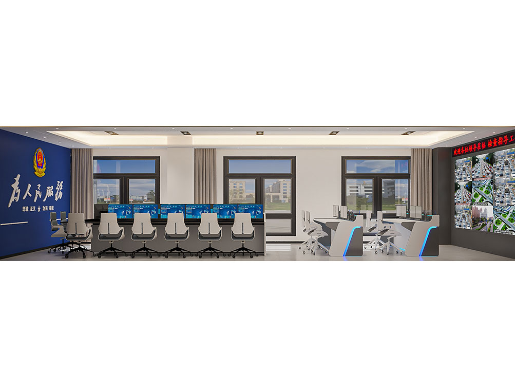 作為職能類辦公室裝修的標桿案例,曹縣公安局指揮中心以簡潔大氣的現代風格為主調:深藍主墻面搭配為人民服務標識,強化職能屬性;一體化操作臺 + 多屏設備適配指揮調度需求,淺灰地面與嵌入式燈光保障空間通透明亮,兼具專業性與實用性,是職能類辦公室裝修中功能優先 + 形象適配的典型呈現。